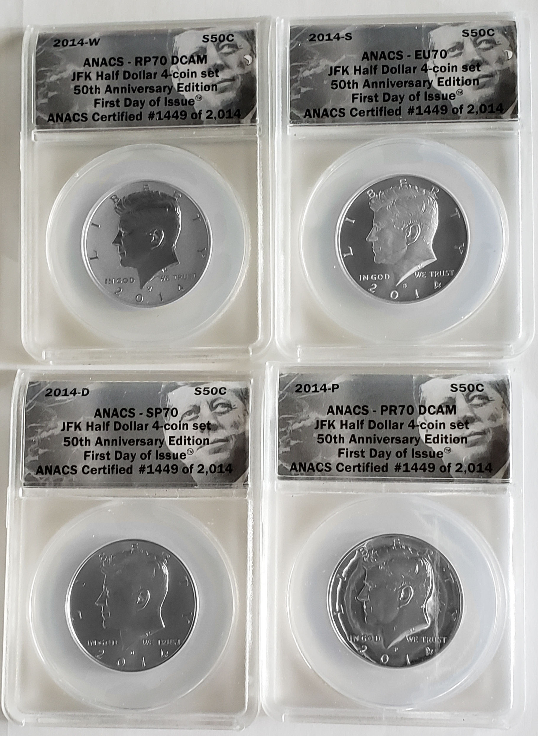 - 2014 Silver 4 Coin Collection 50th Anniversary Kennedy Half Dollars